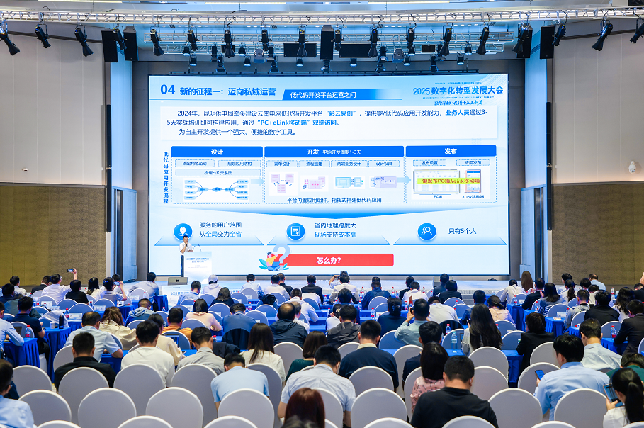 在推动转型落地过程中,南方电网昆明供电局专注攻克基层一线痛点、夯实自主建设能力,先破解转型初期迷茫,通过下基层、理需求,解决一线业务问题;再整合省级中心资源,构建数字化前中后台,助力“一方城池八方共建”;面对业务需求暴增,从“替人开发”转向“带人开发”,结合七巧低代码平台,依托实战化培训、开发者社区,培育自主开发能力,实现开发成本与交付周期的双下降,并计划持续推动低代码与企业自有智能体平台融合,以供电所为试点,开展最小业务单元架构升级,激发全员数字化参与氛围,构建基层业技融合范式。