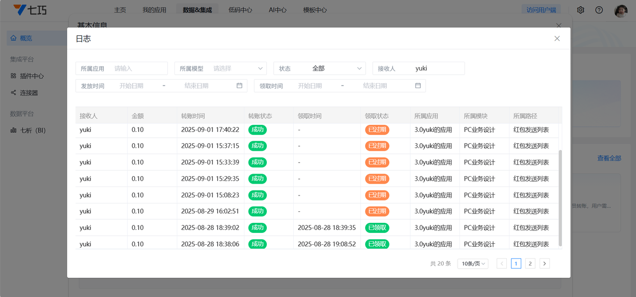 标签:OA七巧低代码企业微信商家运营微信红包微信转账道一云