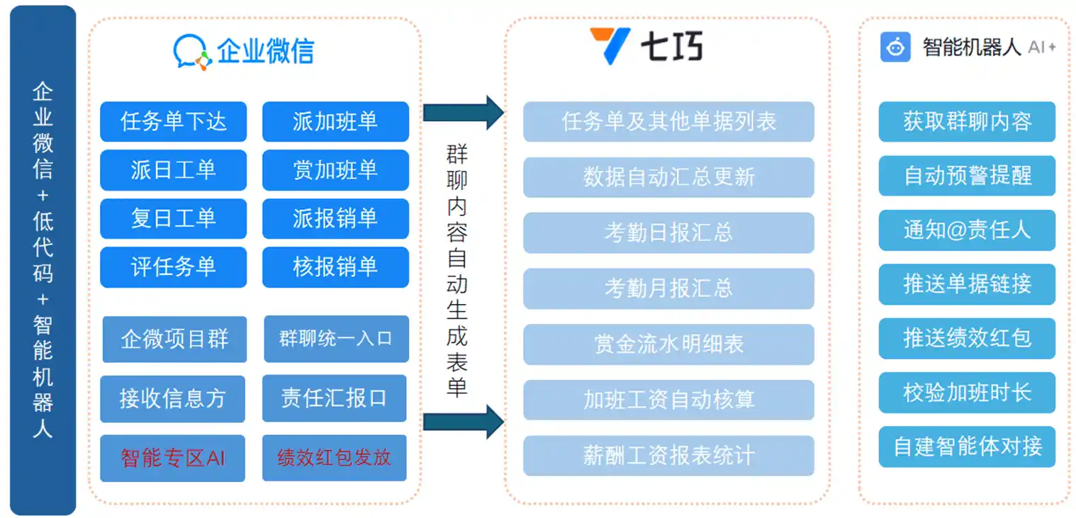 这套将前沿技术落地为业务生产力的核心能力,已在多元场景中验证成效。在知识密集型服务场景,道一云融合企业微信与 AI 智能体技术,为某家具清洁企业搭建智能 AI 客服系统,通过智能问答与知识库检索实现问题自动解答,针对复杂问题则智能判断并生成工单转由专人处理,形成 “提问 — 应答 — 处置” 的全流程数字化闭环;在实时运营流程场景,为某建筑企业打造数据智能管理方案,通过 AI 实时解析沟通信息、自动完成核薪算薪等数据处理,并依托智能数据触发日常激励发放,将传统人工操作模式升级为精准高效的自动化流程。